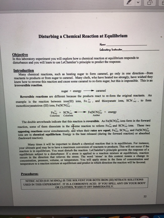 Solved Disturbing A Chemical Reaction At Equilibrium Chegg Com