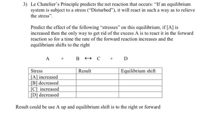 Solved 3 Le Chatelier S Principle Predicts The Net Reaction Chegg Com