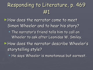 Question 1 translate. Hurry need it. When the unnamed narrator asks Simon Wheeler about Leonidas W.